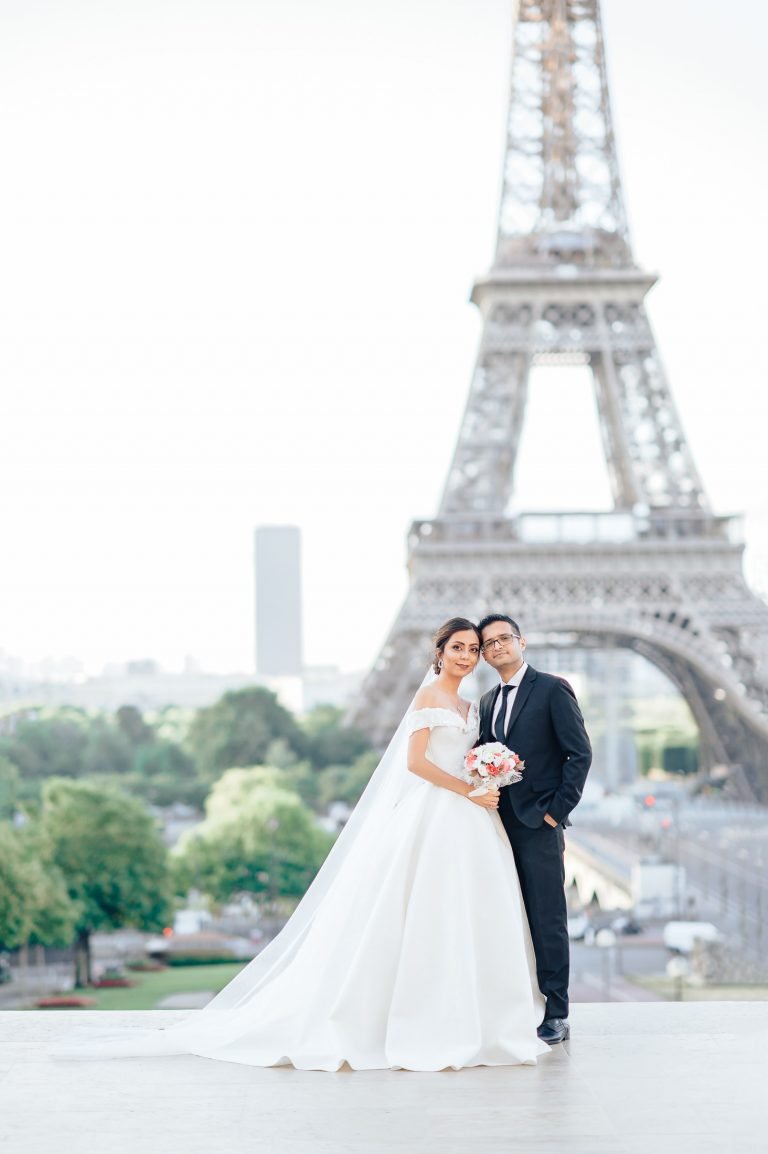 You’ll forever be in love with your wedding photos taken in front of the iconic Eiffel Tower.